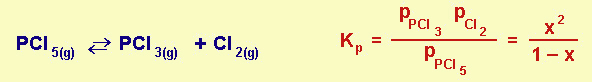 In base al principio di Le Chatelier un aumento del volume del recipiente (o una diminuzione della p) favorisce la dissociazione del pentacloruro di fosforo.
