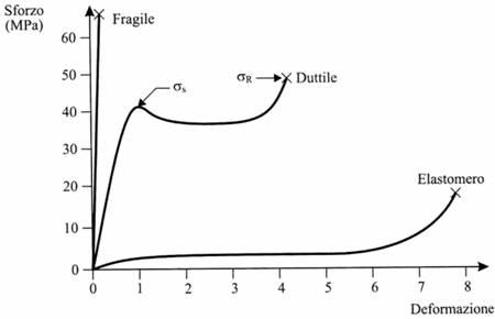 I tre tipici comportamenti dei materiali polimerici sottoposti a trazione sono: