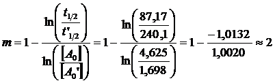 Scrivendo quest'ultima relazione per due diverse concentrazioni iniziali [A0] e [A0'] con i relativi tempi di dimezzamento e dividendo membro a membro, si ottiene