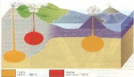 Una parte consistente dei magmi non riesce a raggiungere la superficie e si solidifica in profondità: in tal caso si forma un corpo igneo intrusivo, di dimensioni straordinariamente variabili, che cristallizza all'interno della litosfera ed è chiamato genericamente Plutone. In molti casi, invece, la massa fluida del magma risale per spinta idrostatica verso le regioni superficiali della crosta e tende a concentrarsi in bacini magmatici (camere magmatiche), che possono alimentare le eruzioni vulcaniche. La spaccatura della superficie terrestre attraverso la quale fuoriescono i magmi prende il nome di vulcano. L'edificio che si forma per l'accumulo di tutto il materiale eruttato costituisce nel suo insieme l'edificio vulcanico, mentre il condotto interno che congiunge la camera magmatica con l'esterno è detto camino vulcanico.