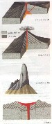 Vulcani di tipo stromboliano o stratovulcani: caratterizzati dall'emissione di colate laviche alternate a gas e materiali piroclastici. Hanno una lava a composizione variabile, a volte più fluida a volte viscosa. Periodicamente ristagna e solidifica ostruendo il cratere centrale. Negli stratovulcani si formano facilmente crateri avventizi sui fianchi del cono principale (Etna). In essi frequentemente si osservano cavità con le pareti scoscese e fondo piatto d'ampiezza insolita, chiamate caldere. Esse sono il risultato di un'attività esplosiva ripetuta nel tempo. In seguito, al loro interno possono formarsi nuovi coni (Vesuvio).