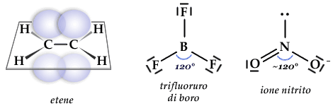 Geometria triangolare-planare di etene, BF3 e NO2- |