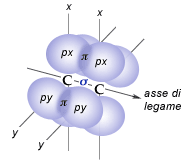 diretti lungo l'asse di legame, mentre i due legami π si formano dalla