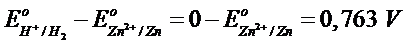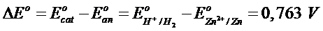 Zinco vs SHE - Se ad esempio poniamo la coppia redox Zn2+/Zn (in condizioni standard [Zn2+] = 1 M) a contatto con l'elettrodo normale ad idrogeno, possiamo misurare una differenza di potenziale di ΔE° = 0.763 V.