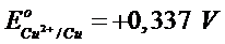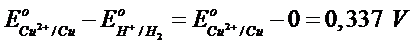 Rame vs SHE - Se invece poniamo la coppia redox Cu2+/Cu a contatto con l'elettrodo ad idrogeno, possiamo misurare una differenza di potenziale di 0,337 V.