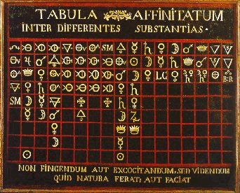 Fig.2.10 Un altro esempio, molto raffinato dal punto di vista dell'immagine, è quello a fianco, ' Tabula affinitatum inter differentes substantias', che si trova presso il Museo delle scienze di Firenze. |