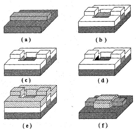 iv. Formazione di una barriera dielettrica sulla superficie esposta dell'isola (Fig. 1(d)).