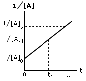 Se la reazione segue una cinetica di secondo ordine del tipo v = k[A]2, riportando in un grafico l'andamento del reciproco della concentrazione in funzione del tempo si ottiene una retta di pendenza k