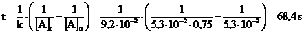 La costante di velocità specifica k può dunque essere calcolata conoscendo il rapporto delle concentrazioni a due tempi diversi e la differenza di concentrazione al tempo iniziale.
