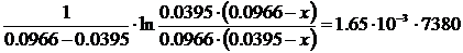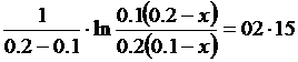 Se ora indichiamo con x la quantità di tiosolfato reagente che reagisce in 7380 secondi con altrettante mol/L di n-propile per dare x mol/L di ciascuno dei due prodotti di reazione, le concentrazioni iniziali e le concentrazioni dopo t = 7380 s saranno