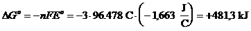 DG° = S DG°prodotti) - S DG°reagenti) = 0 - X = + 481,3 kJ