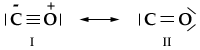 Nel caso del CO, abbiamo indicato come più soddisfacente la formula con il triplo legame. Anche se è necessario assegnare cariche formali ai due atomi, entrambi assumono configurazioni otteziali; inoltre, i dati sperimentali sono in accordo con l'esistenza di un triplo legame nella molecola. Si può quindi immaginare che la struttura dell'ossido di carbonio sia 'intermedia' alle due formule che avevamo rappresentato, ovvero: