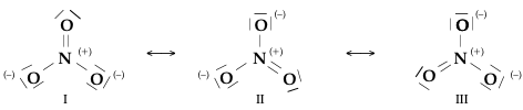 Tuttavia, non c'è nessun motivo particolare per cui il doppio legame N-O sia con l'ossigeno di sinistra. Una rappresentazione dello ione, altrettanto valida e corretta, è infatti quella che segue:
