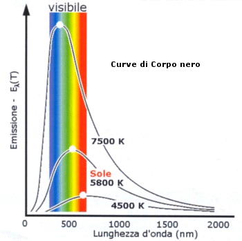 Costruendo un diagramma che abbia in ascissa le lunghezze d'onda crescenti ed in ordinata l'intensità luminosa si ottiene una curva tipica, detta curva di corpo nero , che non dipende dalla natura chimica del materiale emittente, ma è funzione solo della temperatura di emissione.