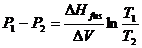 Sottraendo membro a membro la relazione per due diverse temperature T1 e T2 si arriva all'equazione approssimata della curva di coesistenza solido-liquido:
