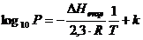 Questa relazione si può usare per prevedere la pressione di vapore ad una data temperatura conoscendo DH ed una pressione di riferimento.