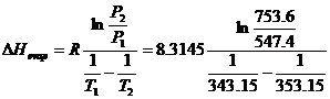 Inoltre l'equazione di Clausius-Clapeyron può essere utilizzata per ricavare il DH da valori noti di pressione e temperatura.