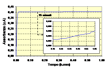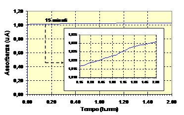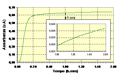 Fig.20 Spettro di assorbimento e cinetica di sviluppo del colorante blu indofenolo (analisi dello ione ammonio). |