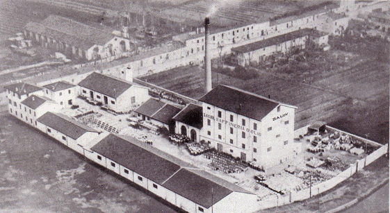 Alla sua installazione stato iniziale, , lo stabilimento era costituito esclusivamente da un grande edificio in muratura ) con annessi magazzini e laboratori ) all interno dei quali avvenivano le principali attività di produzione e confezionamento. Risalgono allo stesso periodo la casa del custode e gli uffici amministrativi prevalentemente addetti alla distribuzione del materiale grezzo in ingresso, e del prodotto lavorato in uscita .