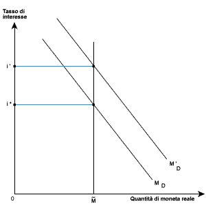 L'aumento della domanda è dovuto ad un aumento del reddito, che sposta la domanda di moneta transazionale e precauzionale verso l'alto, determinando un valore d'equilibrio di i, maggiore del precedente.