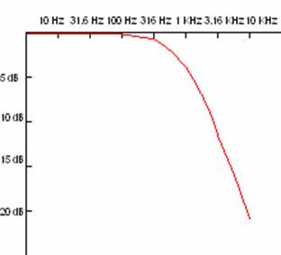 Si verifica che la frequenza di taglio è effettivamente tra 316 Hz e 1 KHz (per la frequenza di taglio si ha ΔΦ= π/4 rad=0.78 rad).