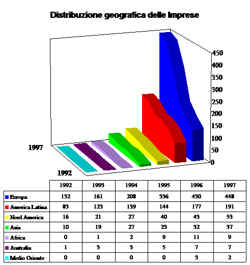 La distribuzione geografica delle imprese che aderiscono al progetto mostra una progressiva diffusione in tutti i continenti.
