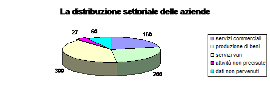 A livello settoriale possiamo notare che l'area nella quale si concentrano di più le attività è quella dei servizi con 300 imprese, seguono poi le attività industriali ed in fine quelle commerciali.