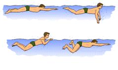 La nuotata sul dorso è l'unica che avviene dalla posizione supina, Gli arti inferiori compiono movimenti alternati dall'alto in basso e viceversa. Le gambe devono essere tese ma non rigide, ed il movimento parte dall'anca. Gli arti superiori si muovono alternati , hanno la funzione di fare avanzare il nuotatore, partendo da sott'acqua fa compiere la circonduzione per avanti-alto.