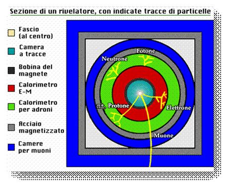 dalle particelle neutre che emergono dal processo di collisione; nel punto più