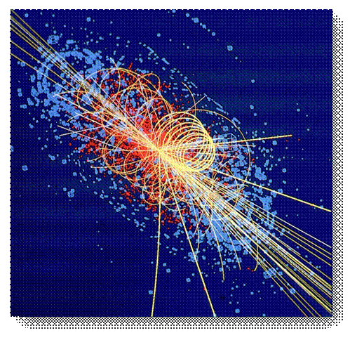 Simulazione di un evento in un acceleratore che dovrebbe generare un bosone di Higgs.