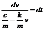 Questa equazione è integrabile direttamente perché a variabili separate. Con la condizione iniziale v=v0 per t=0, si ottiene