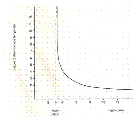 Per contro l'astronauta man mano che si avvicina al raggio critico percepisce l'universo evolvere sempre più rapidamente.