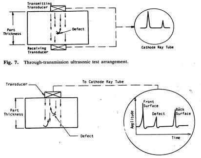 Nell'applicazione più consueta viene emesso un impulso ultrasonoro che, propagandosi nel particolare da controllare, viene in parte riflesso dalle eventuali discontinuità presenti, in parte assorbito, in parte attraversa