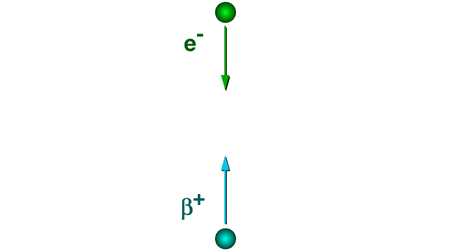 Le particelle ß+ dopo circa 10E-9 secondi vanno incontro ad ANNICHILAZIONE, interagendo con un elettrone. Le due particelle scompaiono e la loro massa è trasformata in 2 fotoni gamma di 0.511 MeV, emessi in direzioni contrapposte.