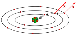 Il riarrangiamento degli elettroni orbitali, che si spostano verso l'orbitale più interno rimasto privo di un'elettrone e quindi verso orbite a minore contenuto di energia, provoca la liberazione dell'energia in eccesso sotto forma di radiazioni X 'caratteristiche'.