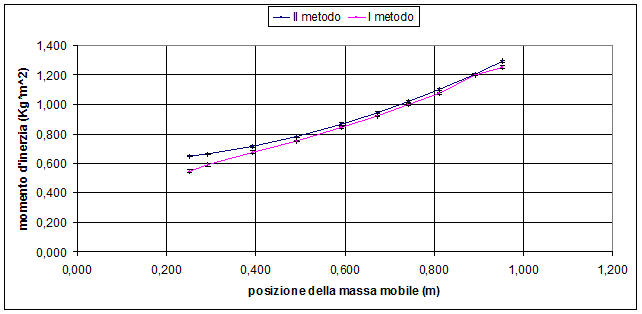 In conclusione analizzando i risultati ottenuti in merito ai momenti d'inerzia possiamo facilmente notare uno scostamento tra i due metodi di calcolo approssimativamente trascurabile. Tutto ciò è facilmente riscontrabile dall'analisi dei grafici dove si nota la quasi perfetta sovrapposizione delle curve dei momenti d'inerzia. Come si voleva dimostrare, si può notare che misurando analiticamente un valore, in questo caso un momento d'inerzia di un pendolo semplice il suo errore sarà nettamente minore rispetto alla stessa misura ottenuta per via indiretta, ovvero con la rilevazione di un campione di misurazioni da analizzare ed elaborare successivamente, come era lecito attendersi, poiché nelle misure indirette l'errore è dato dall'interazione degli errori della singola misura, incrementando in maniera notevole lo scarto dal valore corretto della misura.