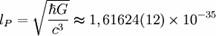 Dove lp = lunghezza di Planck, ћ = costante di Planck ridotta, G = costante gravitazionale, c = velocità della luce