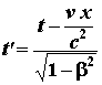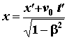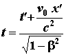 Le formule inverse si ottengono senza calcoli, solo tenendo conto che, se K' si considera fisso, sarà K a muoversi con una velocità - v ; allora ad x si deve sostituire x' e t' a t. Si ha così: