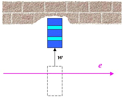 Consideriamo un'automobile che si muove a velocità w verso un muretto (nella figura qui sopra essa è vista dall'alto): se essa procede lentamente, toccando il muro, si fermerà senza scalfirlo; se la sua velocità, però, é elevata, possiede un impulso (m v) molto elevato e sfonda il muretto. Rimanendo incastrata in esso, vi trasferisce tutta la propria quantità di moto. Supponiamo ora che un elettrone passi, a velocità v, prossima a quella della luce, parallelamente al muretto. Per la contrazione dei tempi, esso vedrà l'automobile muoversi lentissima verso il muretto, eppure sfondarlo, come se si potesse far crollare il muro di casa solo appoggiandovi la mano.