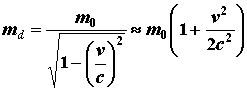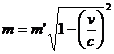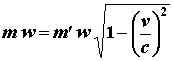 dove m0 é la massa a riposo del corpo, calcolata quando la sua velocità rispetto all'osservatore è zero, mentre md é la sua massa dinamica, a velocità v Se si moltiplicano entrambi i membri per c2 e si sviluppa, si perviene all'equazione:
