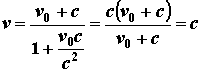 Qualunque sia il valore di v0 e di v' v é sempre minore di c. Si ha v = c solo se una delle due velocità uguaglia c, perché allora: