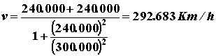 Rifacciamo un esempio a noi già noto, perché siamo partiti proprio da esso. Se si fosse sul treno di Einstein e si accendessero i fari, la loro luce dovrebbe viaggiare ad una velocità di: