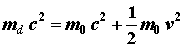 mdtot c2 = m'0 c2 + 1/2 m'0 v2 + m''0 c2 + 1/2 m''0 v2 +