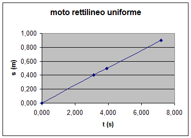Trascurando i minimi errori, che sono causati dalle piccole e inevitabili imprecisioni nella misura, si nota che ci sono tutte le caratteristiche di un moto rettilineo uniforme, vale a dire che la velocità è costante nel tempo e inoltre che la velocità media è uguale alla media delle velocità.