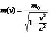 Se nella meccanica classica la massa di una particella è una proprietà della particella che non dipende dalle sue condizioni fisiche, nella meccanica relativistica la massa m varia con la velocità v della particella secondo la legge