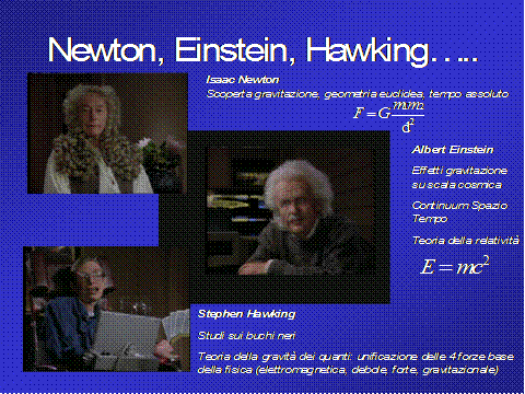 Tre grandi fisici, il pensiero e le scoperte dei quali rappresentano tre capisaldi della fisica moderna: Isaac Newton (1642-1727), Albert Einstein (1879-1955) e Stephen Hawking (1942), riuniti nella finzione cinematografica di Star Trek The Next Generation ci danno lo spunto per tracciare il percorso dell'argomento di questo saggio.