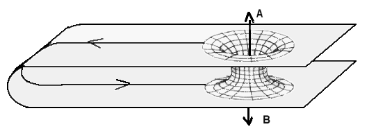 singolarità di due buchi neri (singolarità nuda), detto ponte di Eistein-Rosen o wormhole.