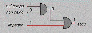 Quello che abbiamo esaminato finora, può definirsi un semplice elaboratore dedicato, capace cioè di eseguire un compito particolare: verificare la presenza di due eventi (bel tempo, caldo) o di un evento alternativo (impegno). E' ovvio che un simile elaboratore è troppo semplice per avere qualche utilità. Tuttavia, si può facilmente intuire che gli elementi discussi costituiscono la base per combinare tra loro più porte logiche in modo da ottenere rapidamente, e senza confusione, decisioni immediate. Inoltre, si possono costruire circuiti in grado di effettuare operazioni matematiche.