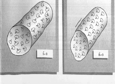 La presenza di un campo magnetico B esterno impone un'orientazione ai piani su cui ruotano gli elettroni dentro un pezzo di ferro. I loro campi magnetici tendono così a disporsi lungo la direzione del campo esterno e si sommano, dando una risultante diversa da 0. In queste condizioni il ferro è una calamita