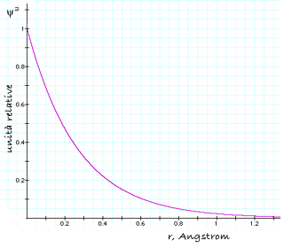 Il grafico di questa funzione, mostrato nella figura che segue, descrive la cosiddetta densità di probabilità elettronica. Come si può osservare, la densità per unità di volume è massima sul nucleo e decresce progressivamente allontanandosi da esso, fino a diventare zero a distanza infinita.